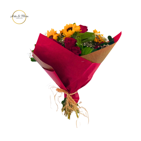 Caixa enfeitada 6 rosas + ursinho + ferrero